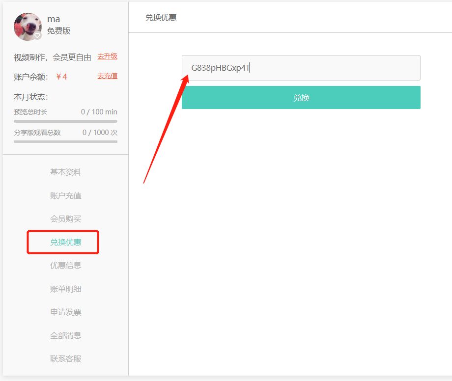 第二步:选择兑换优惠,输入优惠码。