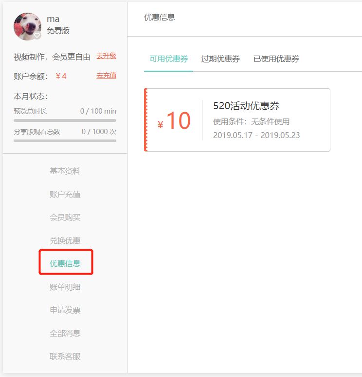 领取成功后可在优惠信息中查看