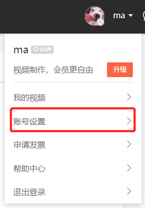 第一步:鼠标放到用户名上,在下拉菜单中选择账号设置。